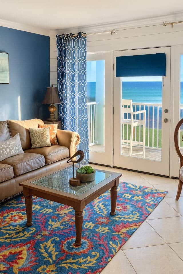 From the moment you enter, you’re greeted with bright natural light, airy décor, and a relaxed beach vibe that makes you feel instantly at home. The open living area features comfortable seating, coastal-inspired artwork, and French doors that open onto a private balcony — the perfect spot to enjoy your morning coffee or a sunset cocktail while taking in a beautiful gulf view.
